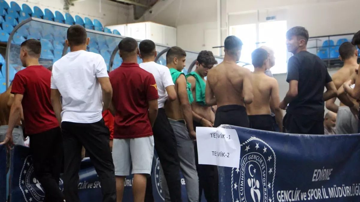 664. Tarihi Kırkpınar Yağlı Güreşleri'nde pehlivanların kayıt işlemleri Mimar Sinan Spor Salonu'nda yapılıyor.