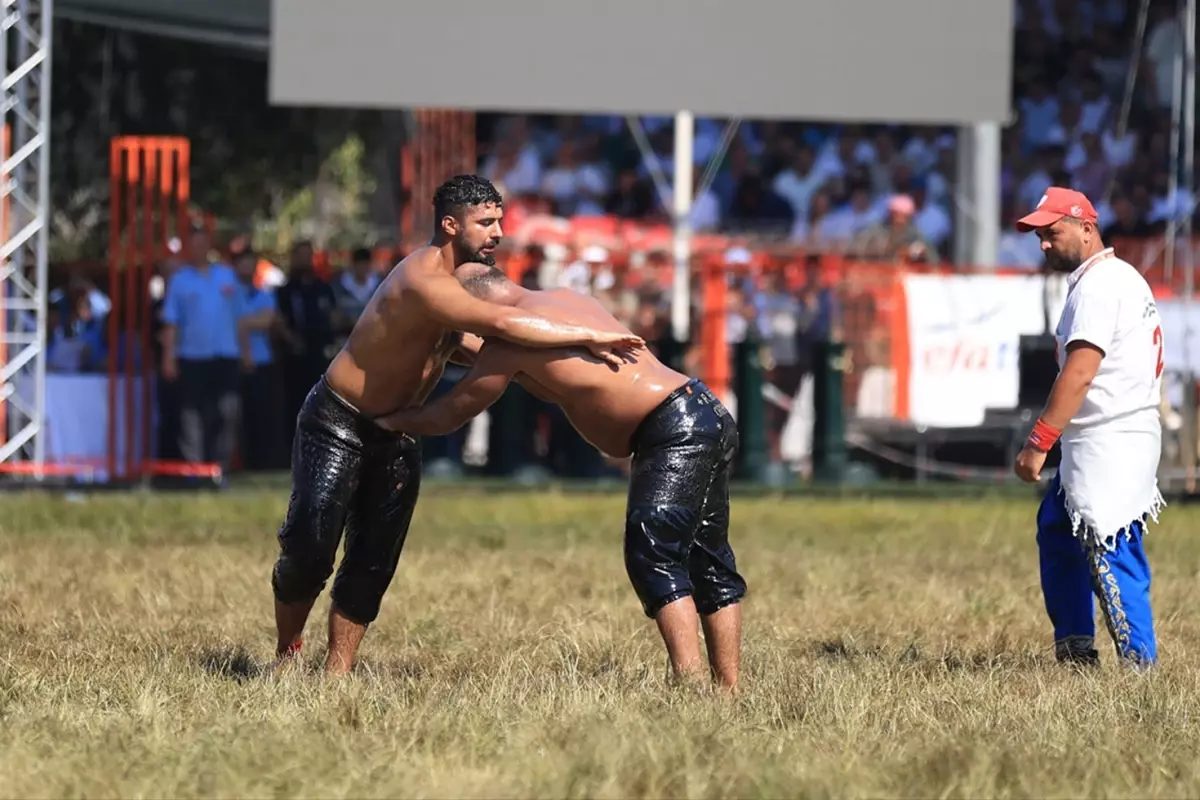 Kırkpınar’da karşılaşan Ağıralioğlu ve İnce güreşe tutuştu