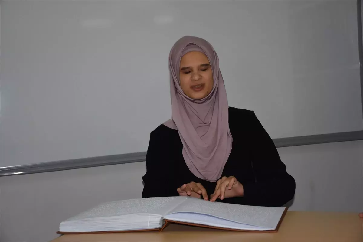 Afyonkarahisar'da görme engelli Aynur Yıldız, Kur'an-ı Kerim'i ezberleyerek hafız olmak istiyor.