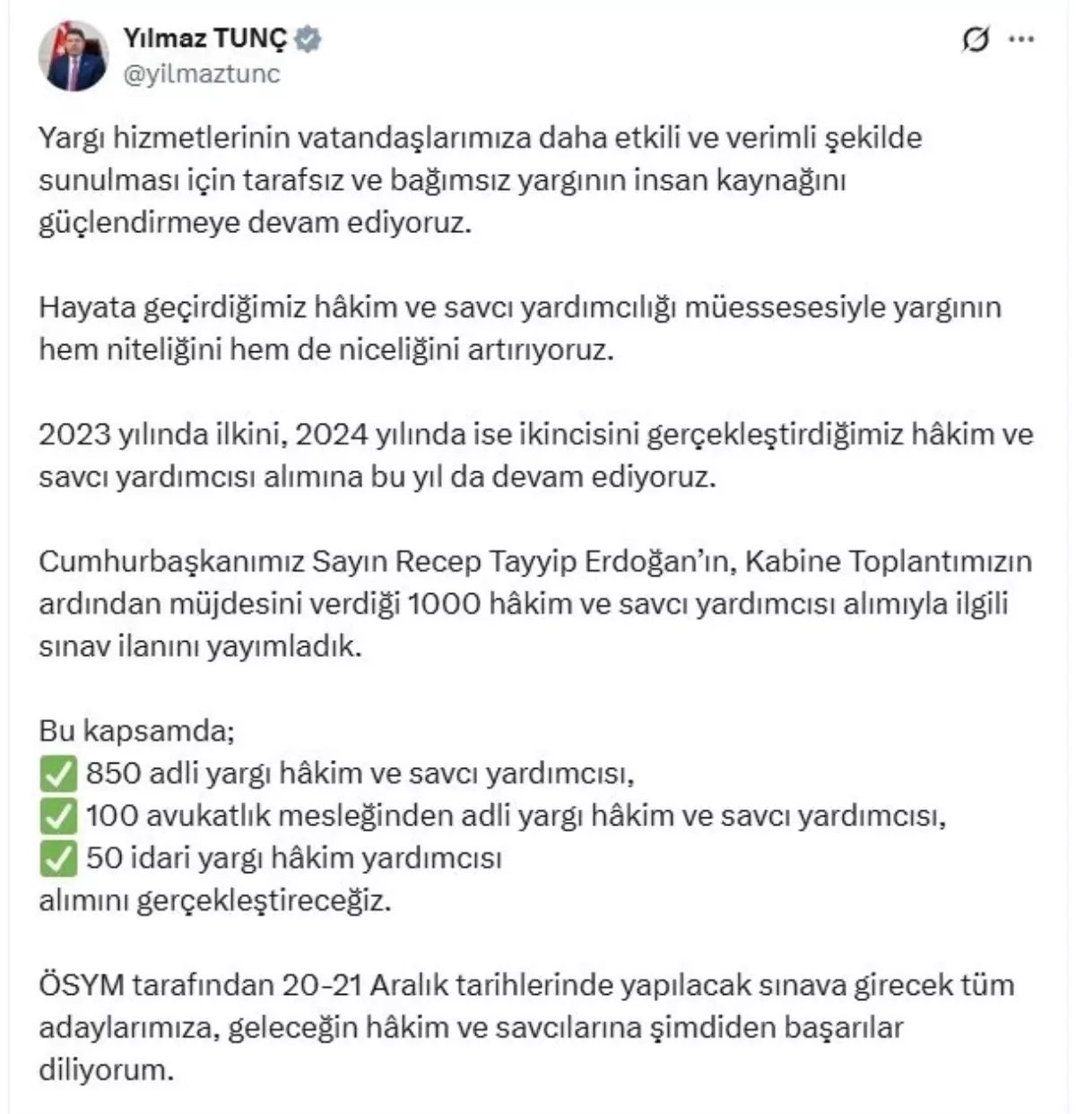İZMİR TUMED HABER SON DAKİKAAdalet Bakanı Yılmaz Tunç, NSosyal hesabından yaptığı paylaşımda, Hakimler ve Savcılar Kurulu olarak "Adli ve İdari Yargı 2025 Yılı Mazeret ve Müstemir Yetki Kararnameleri"ni yayımladıklarını belirtti.1840 MÜSTEMİR YETKİ DÜZENLEMESİ"Mazeret Kararnamesiyle, 621 hakim ve cumhuriyet savcısının atamasını...