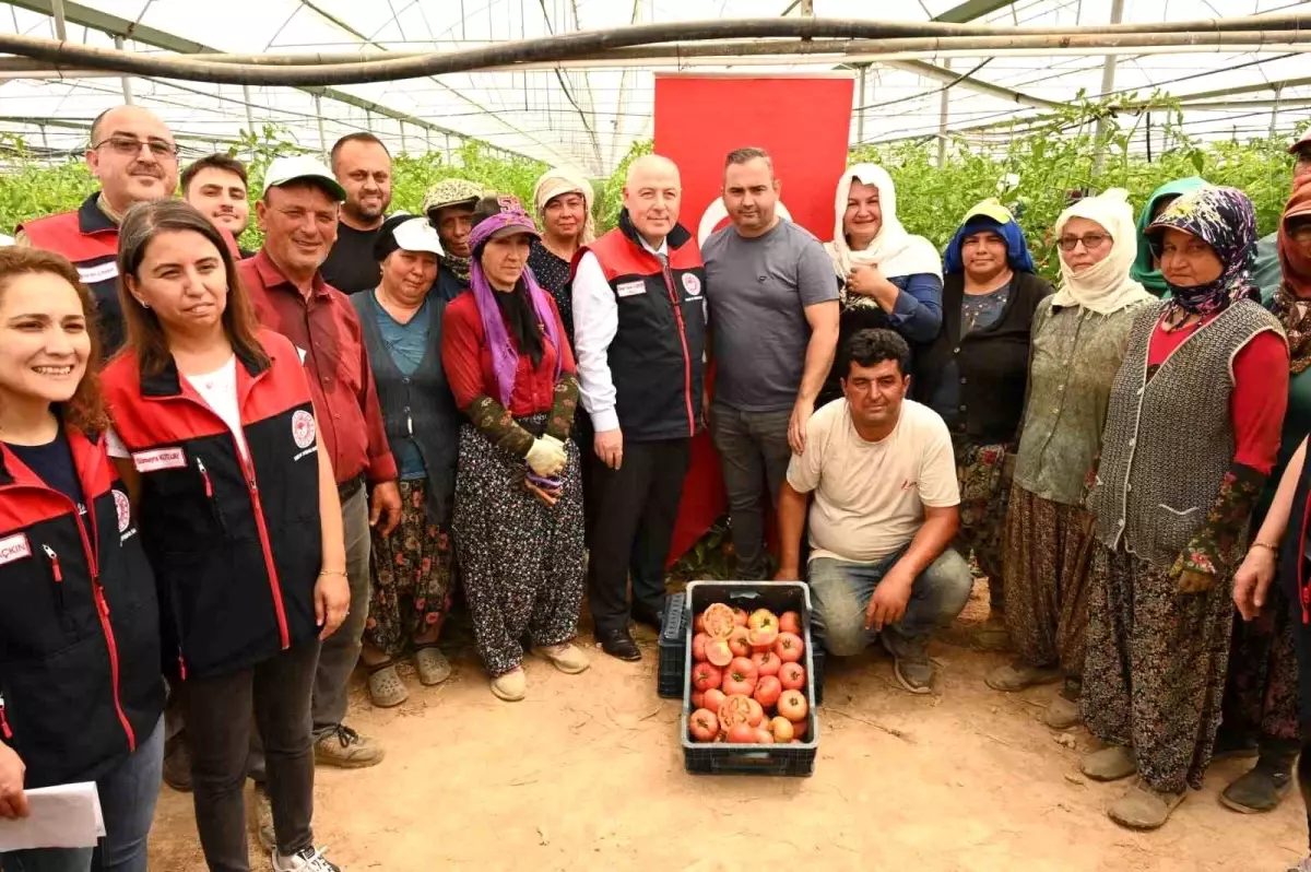 Vali Coşkun, Acıpayam'daki seralarda hasat yaptı, 272 hektar sera alanı mevcut olduğunu açıkladı.