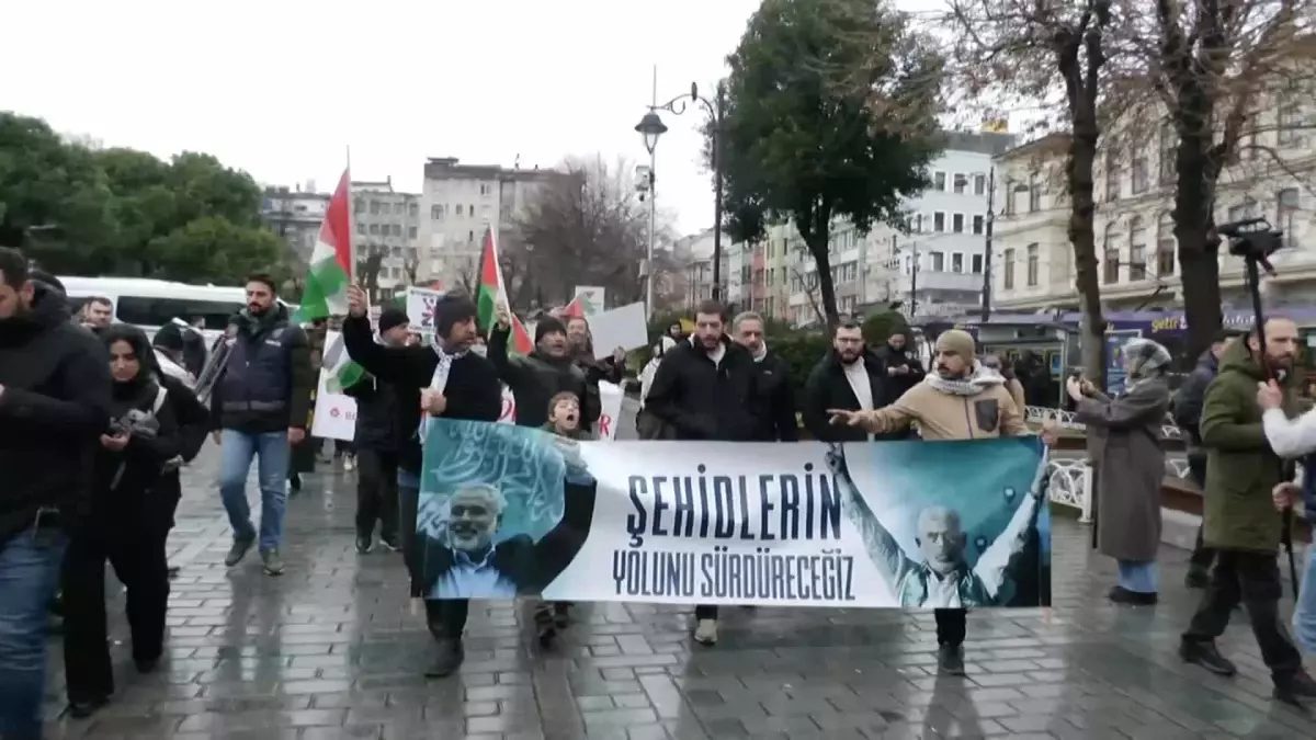 Direniş Çadırı grubu, Filistin için “Gazze’ye tam destek, İsrail’e tam boykot” sloganıyla Sultanahmet’ten Ayasofya’ya kadar yürüyüş yaptı. Açıklamada, “1 Ocak’ta yüreği Gazze için atan vicdanlı 10 binlerce kişi, iktidar ve bu sivil toplum kuruluşlarının çağrısıyla Galata’da toplanmışken aynı saatlerde Ceyhan Limanı’ndan tankerler dolusu petrol sevkiyatı sürüyordu” denildi.