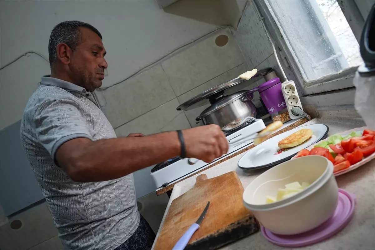 İzmir'de İbrahim Kale, üç çocuğuna tek başına bakarak onlara sevgi dolu yemekler hazırlıyor.
