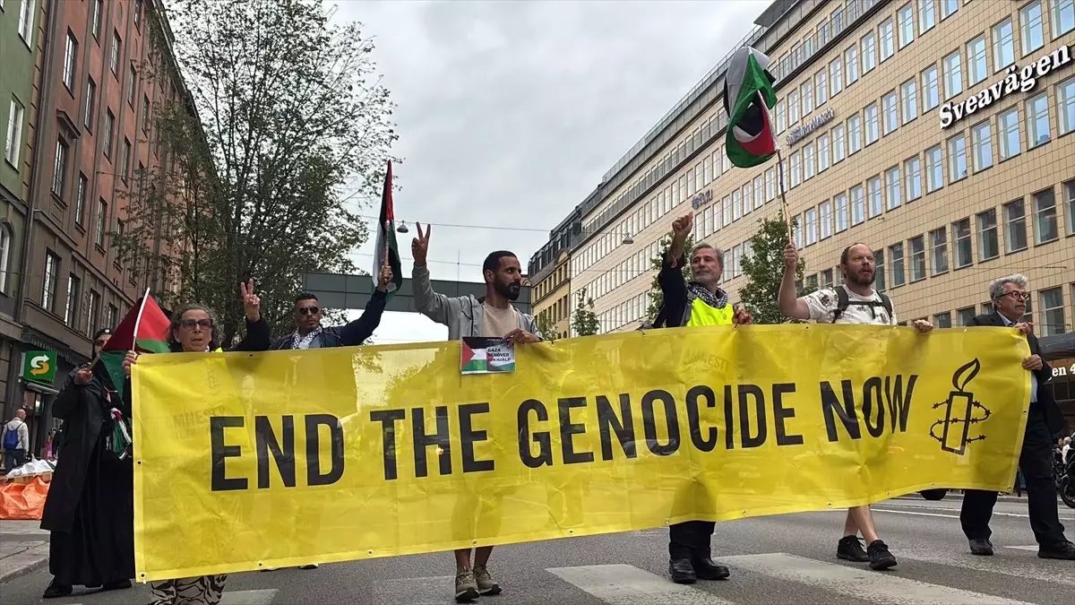 Stockholm'de yüzlerce kişi, İsrail'in Gazze saldırılarını protesto ederek ateşkes talep etti.