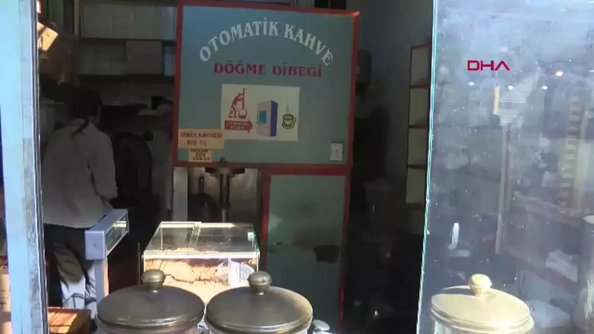Bekir Kölgeli, Basmane'deki dükkanında dibek ve Türk kahvesinin farklarını anlatıyor.