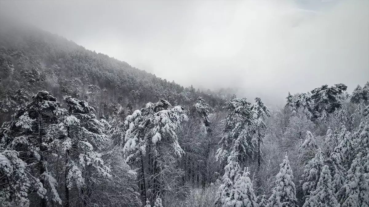 Kütahya'daki Domaniç Dağları, kar yağışının ardından dronla görüntülendi. Manzaralar etkileyici.