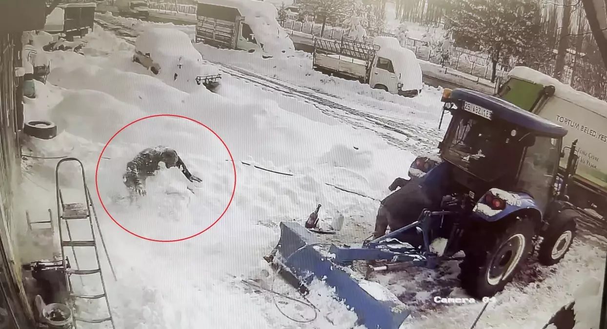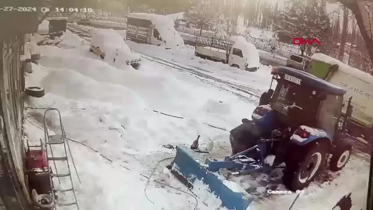 Tortum ilçesinde oto lastik tamircisi Kahraman Kaya'nın üzerine çatıdan kar kütlesi düştü. Kazayı küçük sıyrıklarla atlatan Kaya, dikkatli olunması çağrısında bulundu.
