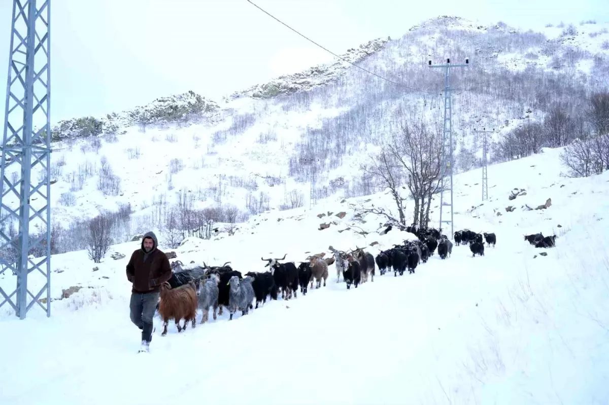 Muş'ta besiciler kar yağışı nedeniyle mezradan köye döndü, hayvanları ahırlara taşıdı.