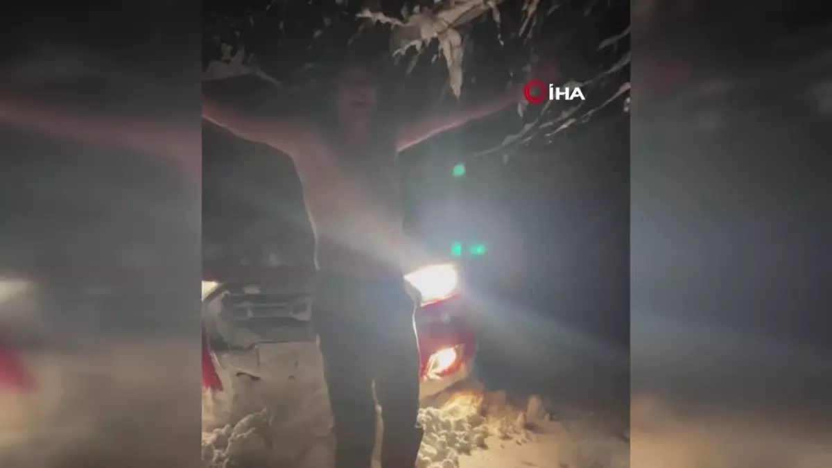 Sakarya'nın Pamukova ilçesinde bir vatandaş kar banyosu yaparak karın tadını çıkardı.