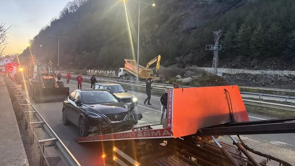 Artvin'de meydana gelen heyelan sonucu Karadeniz Sahil Yolu'nda trafik akışı kontrollü olarak sağlanırken, toprak altında kalmış olabileceği düşünülen bir aracın bulunması için arama çalışmalarına intensiv bir şekilde devam ediliyor. Ekipler, yol açma ve temizlik çalışmalarını sürdürüyor.
