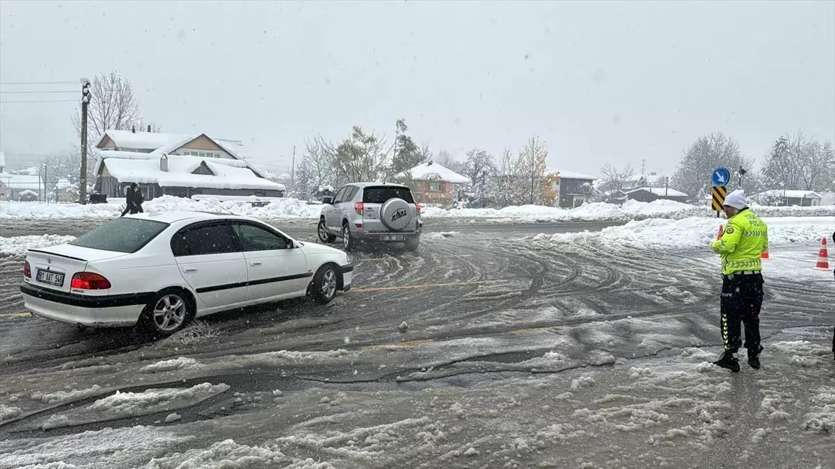 Anadolu Otoyolu'nda kar nedeniyle ulaşım durdu, sürücüler dikkatli olmalı.