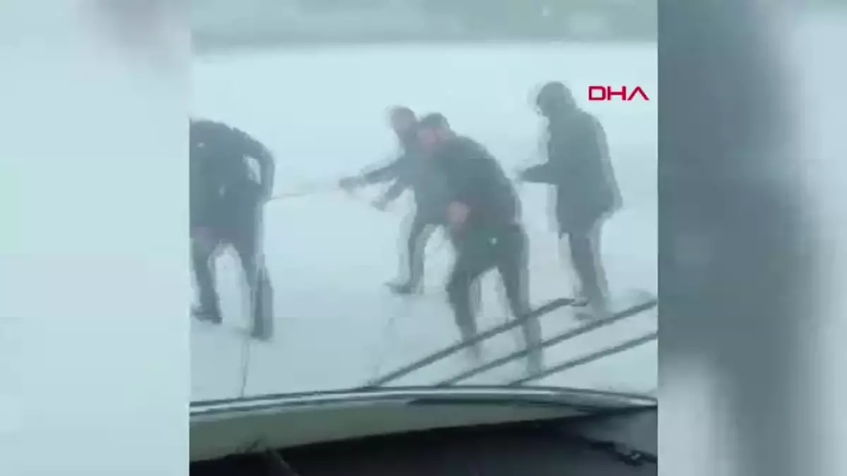 Van-Bahçesaray kara yolu üzerindeki Karabet Geçidi'nde etkili kar yağışı nedeniyle yolda kalan minibüsü yolcular halatla çekerek ilerletti. Çığ riskinin bulunduğu yolda, Karayolları ekipleri de çalışmalarını sürdürdü.