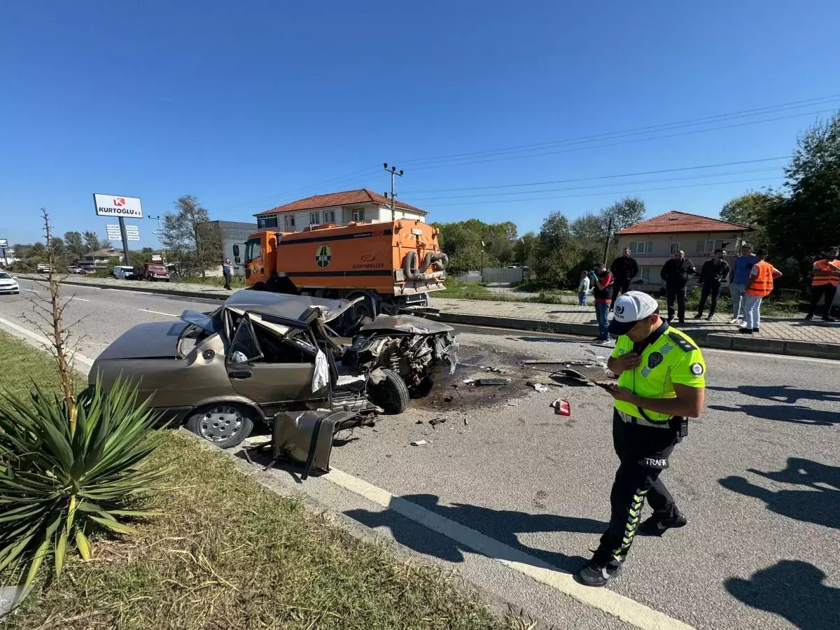 Bartın-Ankara yolunda otomobil, Karayolları kamyonuna çarptı. Sürücü Mehmet Kara ağır yaralı.
