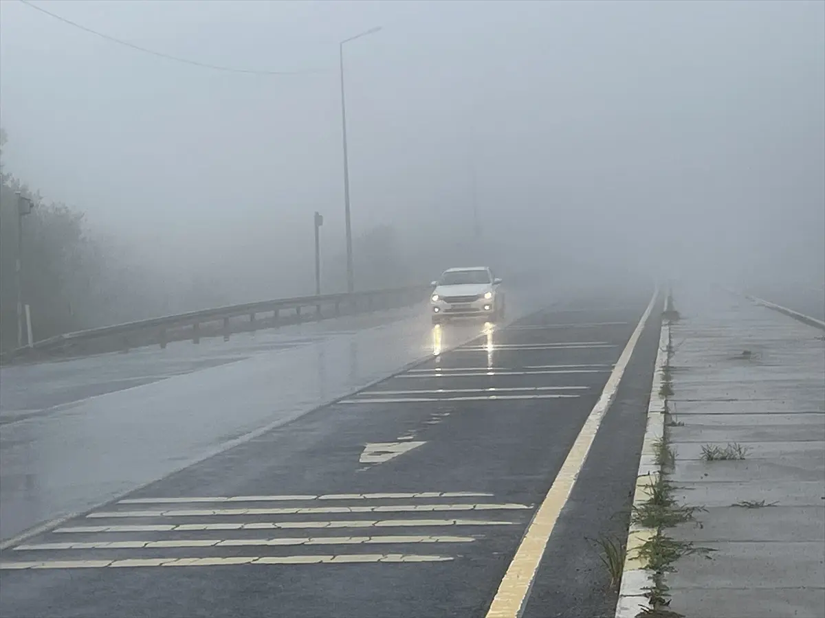 D-100 kara yolunda sağanak ve sis nedeniyle görüş mesafesi 30 metreye düştü. Sürücülere uyarı.