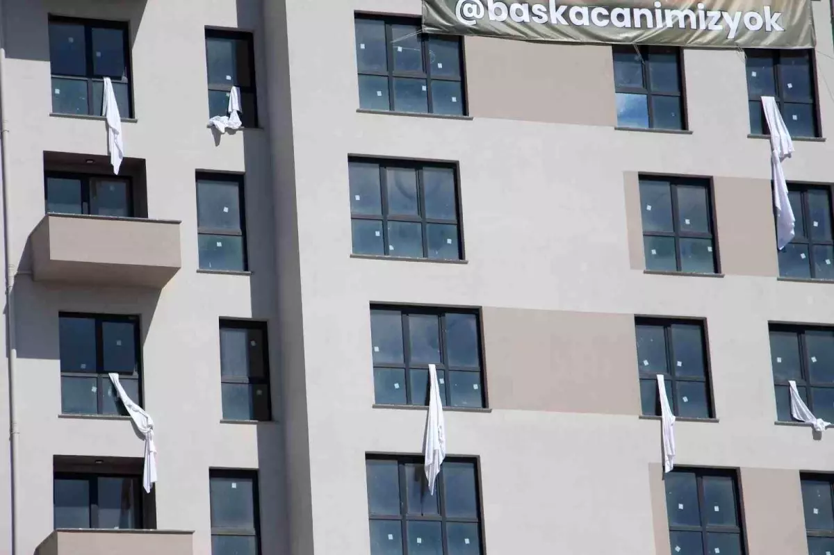 Rıfat Doğan, eşi ve kızını kaybettiği yangın sonrası binalara pankart ve çarşaf asarak protesto etti.