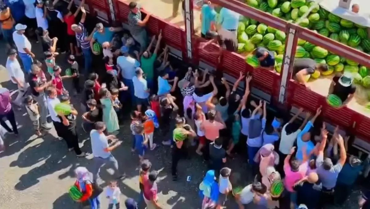 İbrahim Öztürk, 27 ton karpuzu Birecik'te halka ücretsiz dağıtınca izdiham yaşandı.