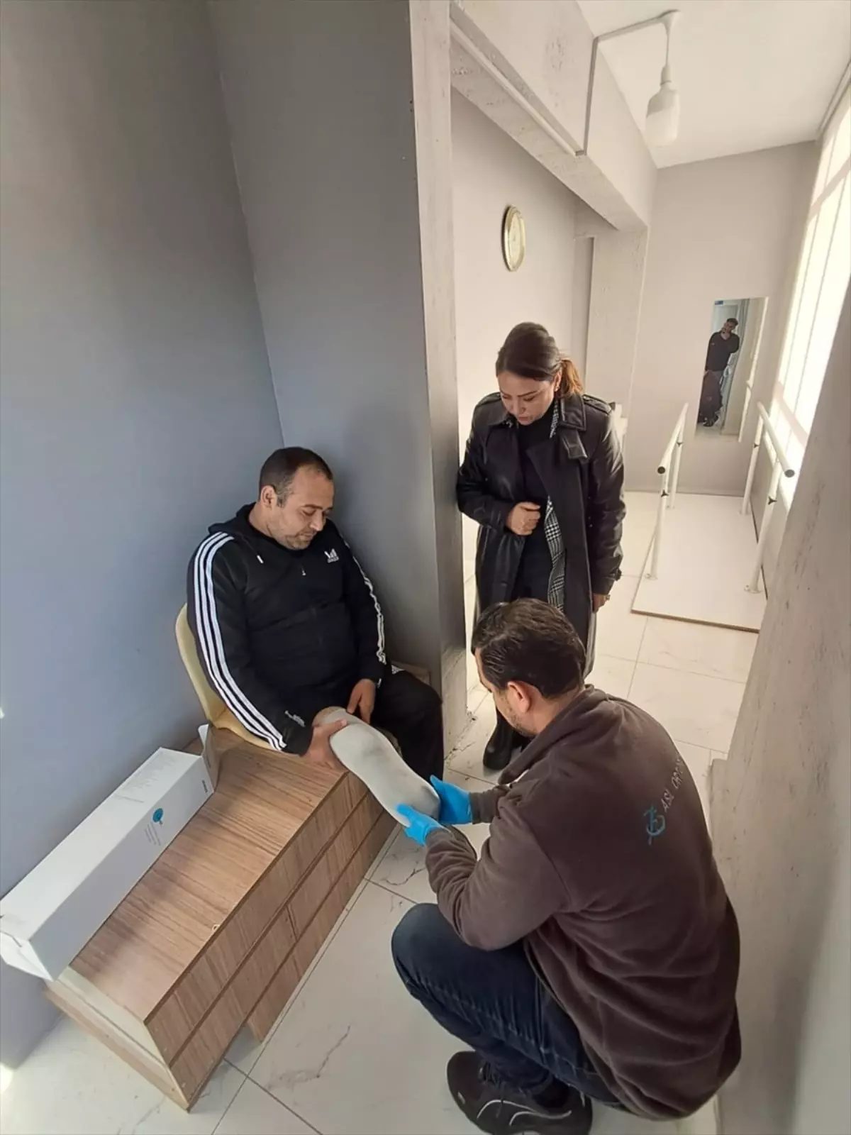 Diyabet nedeniyle bacağını kaybeden Ali Giden, muhtarın desteğiyle protez bacak taktırdı.