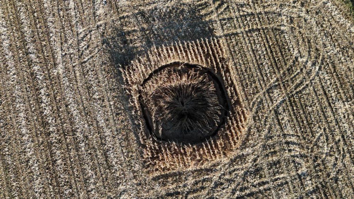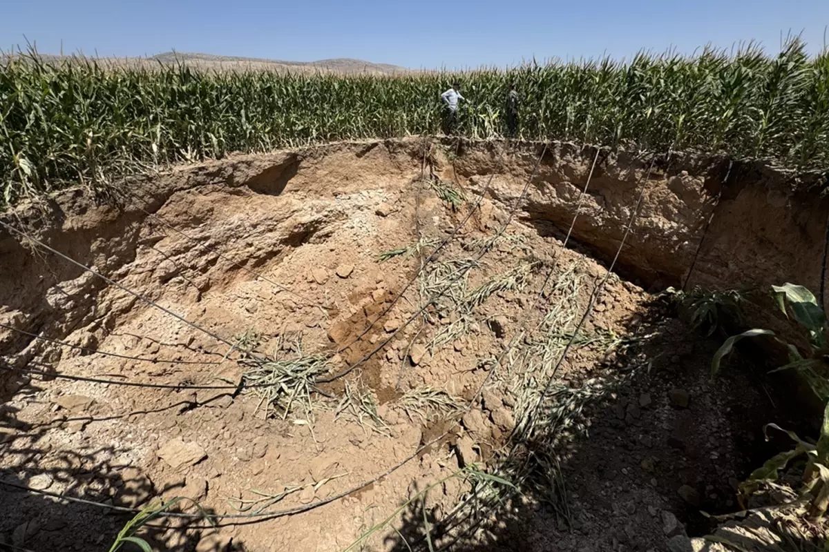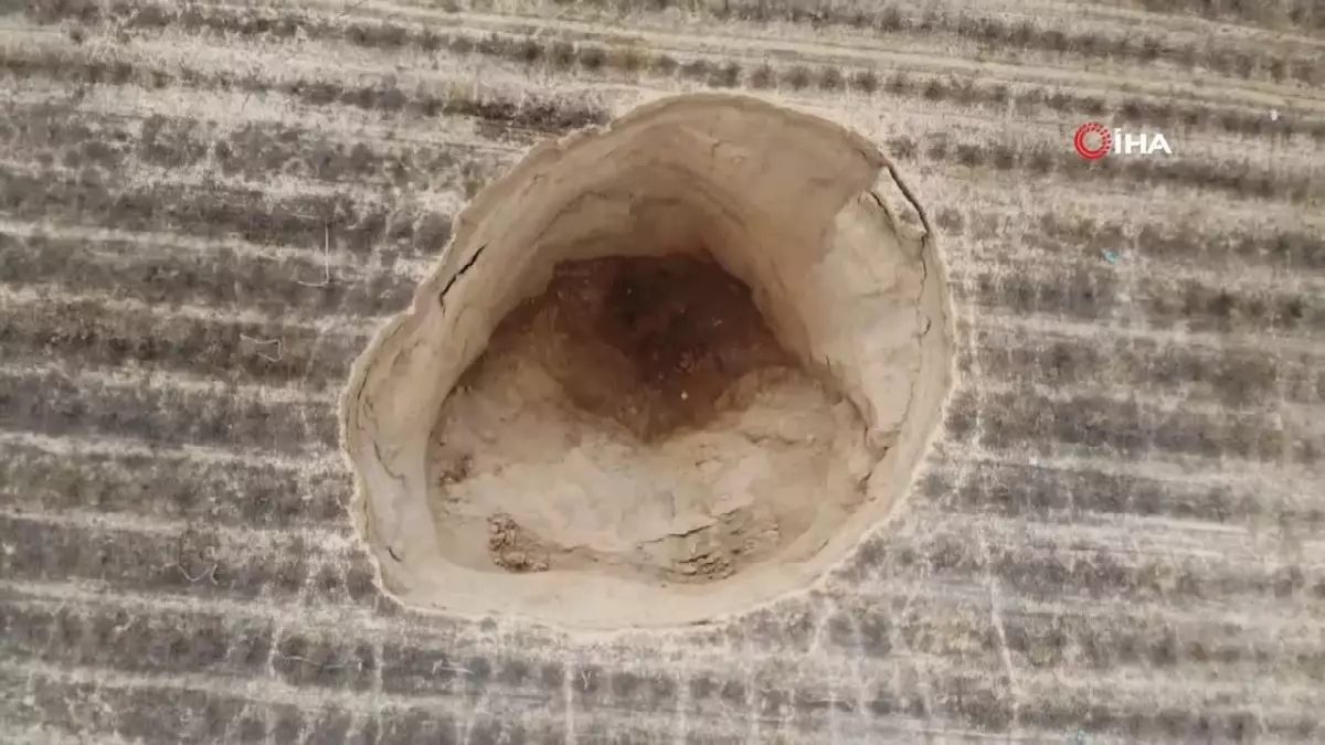 Karaman'ın Ayrancı ilçesinde 14,5 metre çapında obruk, mısır hasadı sırasında ortaya çıktı.