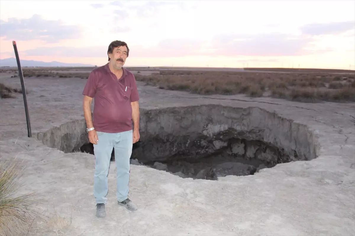 Konya'nın Karapınar ilçesinde tarım arazilerinde 100'den fazla obruk oluştu, endişe artıyor.