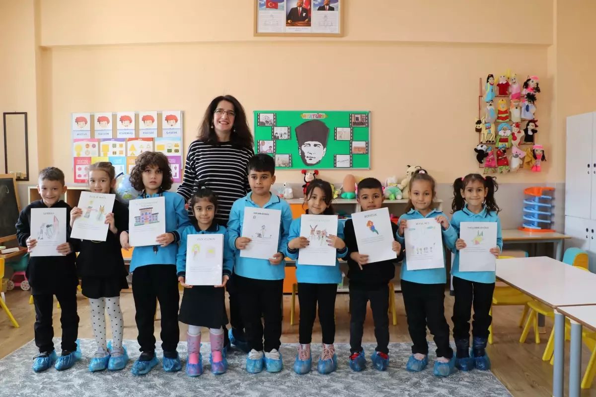 İZMİR'in Narlıdere ilçesindeki Hasan İçyeri İlkokulu'nda ana sınıfı öğretmeni Günay Özgün Dursun, başlattığı proje ile miniklerin velilerinin yardımı ile hayal dünyalarını resmetmelerini ve yazıya dökmelerini sağladı.