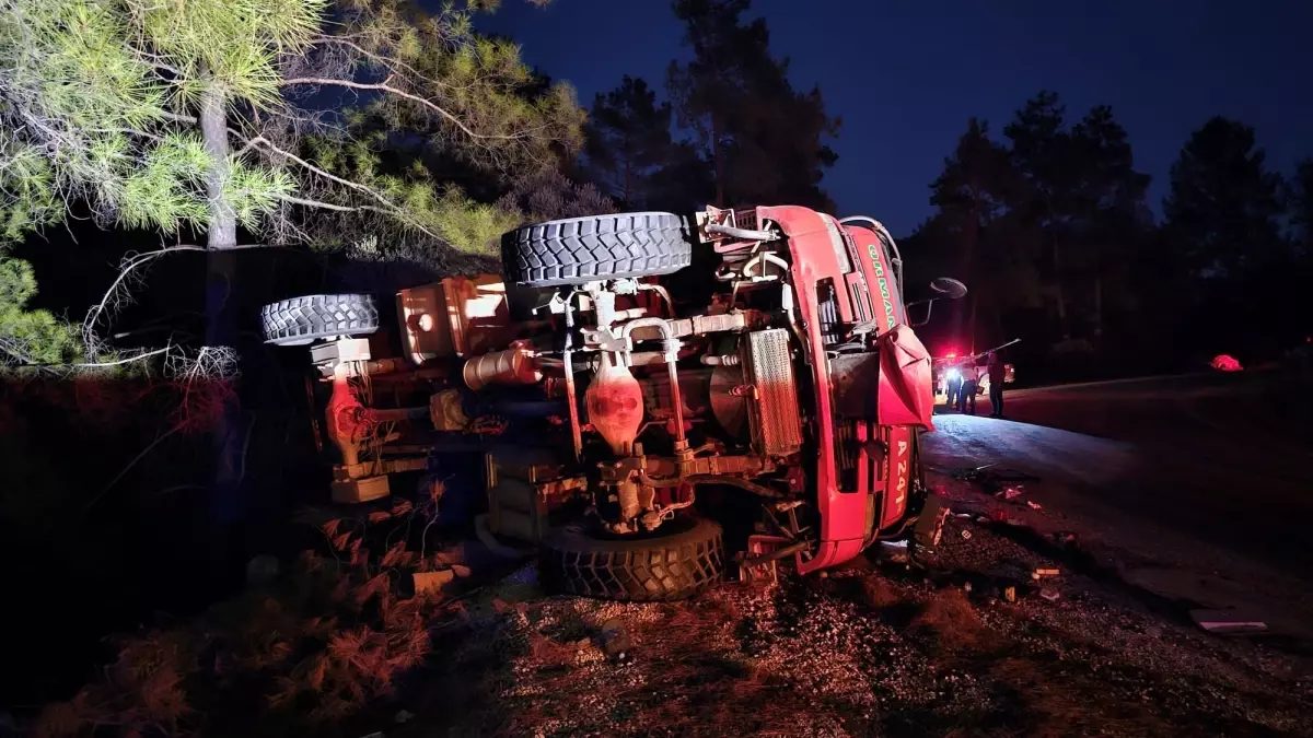 Antalya'nın Serik ilçesinde yangın söndürme çalışmalarından dönen arazöz devrildi, 2 orman işçisi yaralandı.
