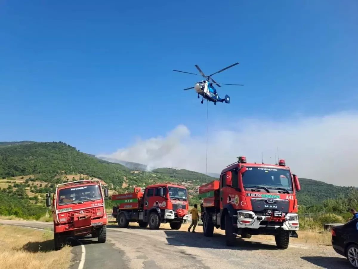 Sakarya'nın Taraklı ilçesindeki orman yangınına havadan ve karadan müdahale sürüyor.