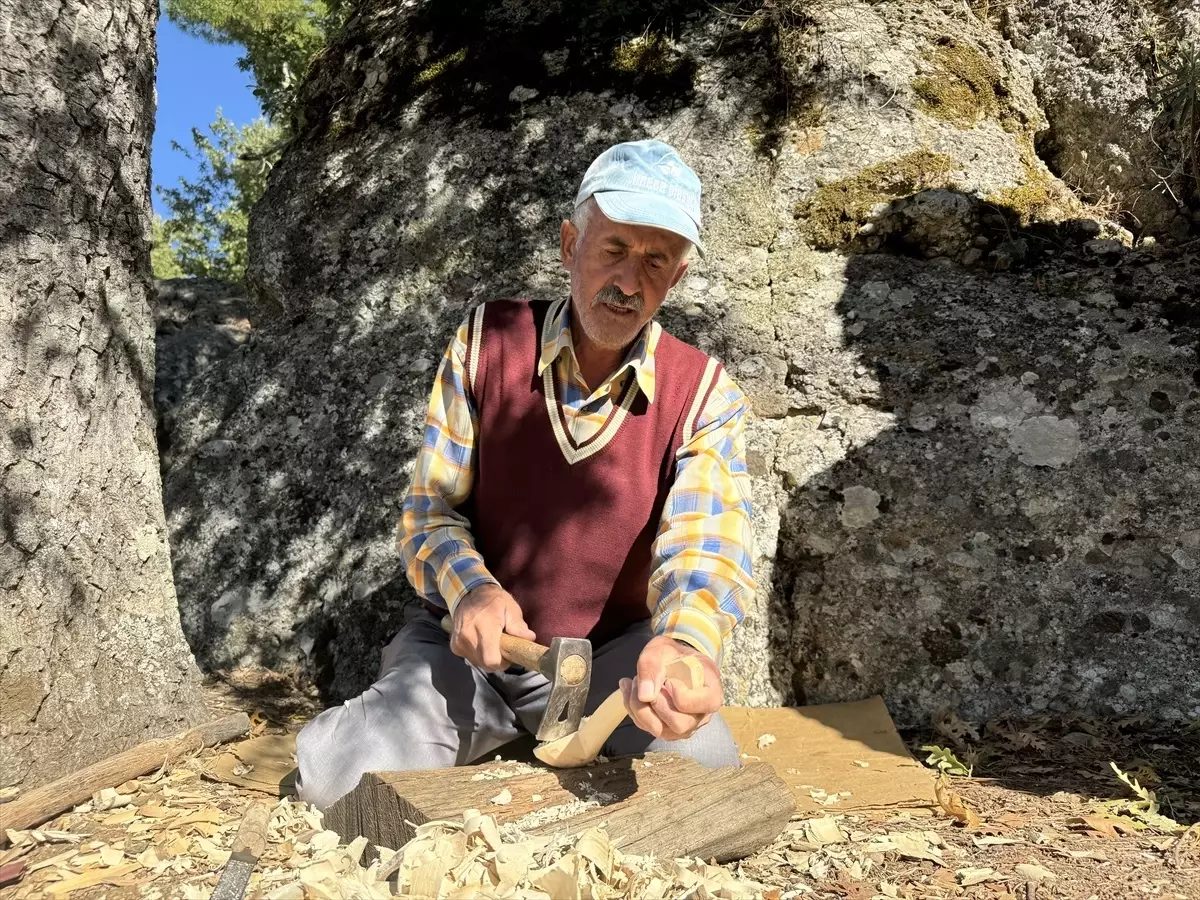 İhsan Çelik, Adam Kayalar'da tahta kaşık yaparak hem kültürü tanıtıyor hem de geçimini sağlıyor.