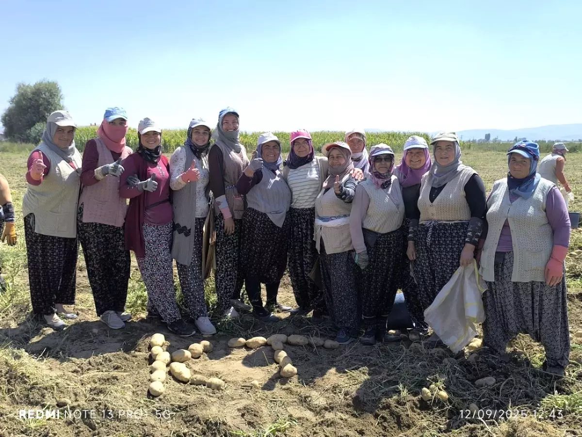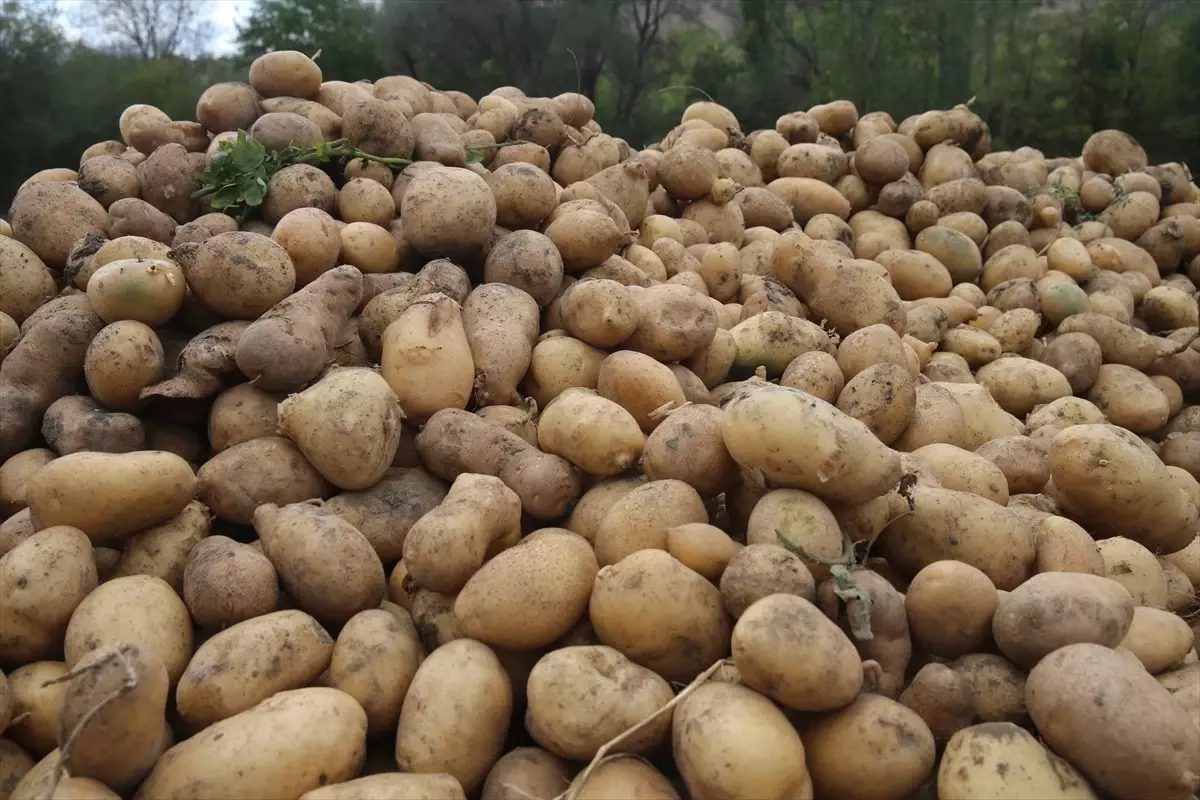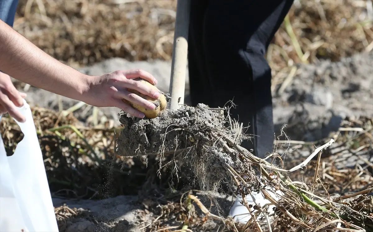 Kuraklığa rağmen Kümbet mahallesinde dekar başına 4 ton patates hasadı yapıldı.
