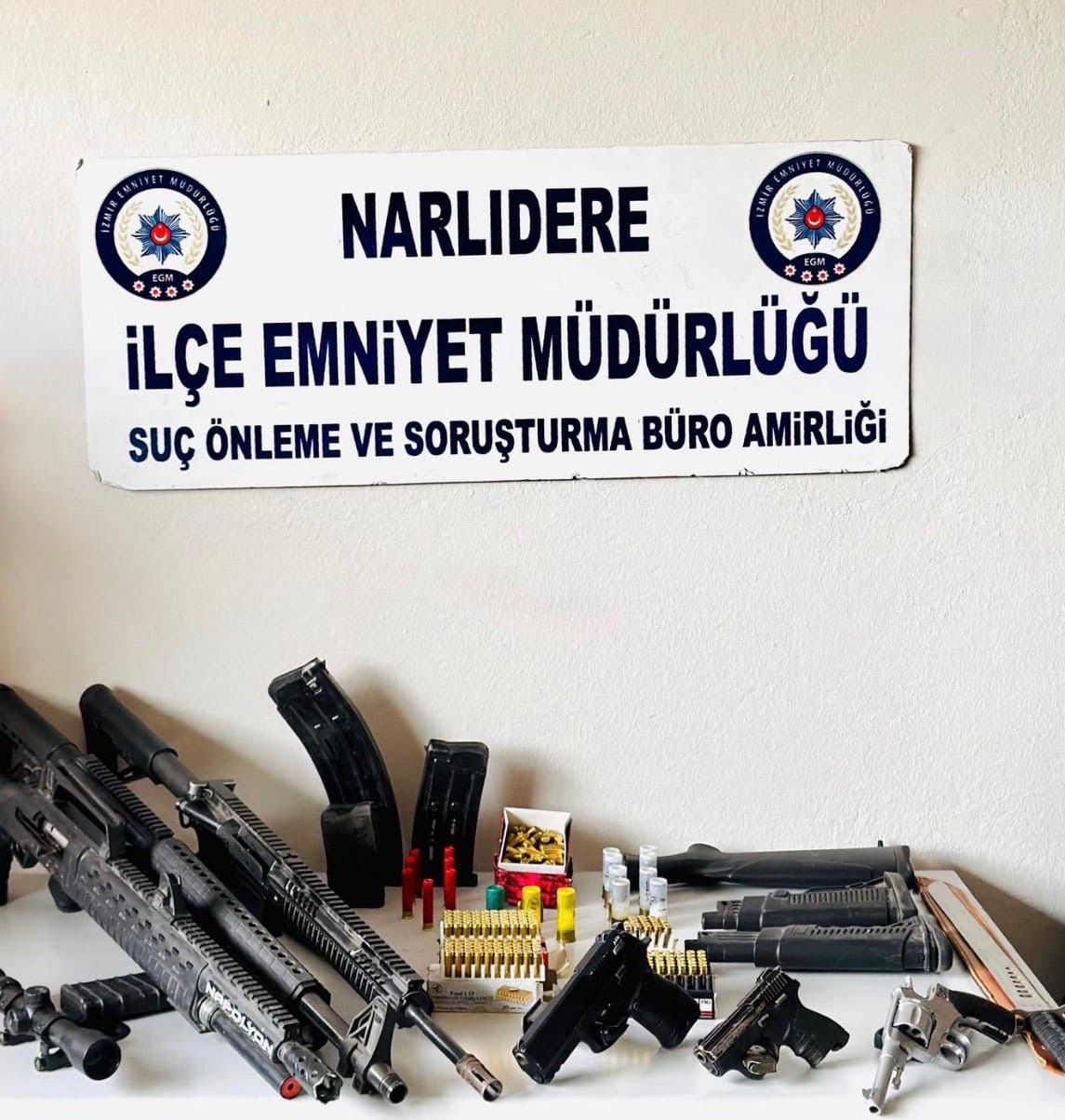 NARLIDERE’DE SİLAH ARSENALİNE BASKIN!3 TABANCA, 3 TÜFEK VE CEŞİTLİ MÜHİMMATLAR ELE GEÇİRİLDİ