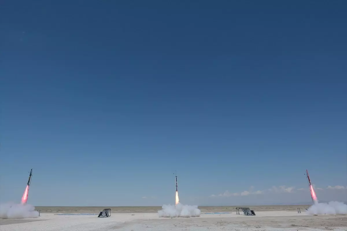 Roketsan öncülüğündeki TEKNOFEST Roket Yarışması'nda üç roket aynı anda ateşlendi.