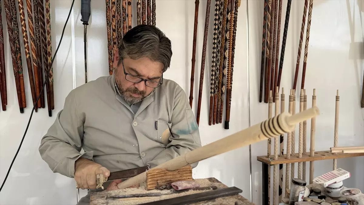 Necati Akçasu, Zonguldak'ta geleneksel baston yapımını öğretip kültürü aktarıyor.
