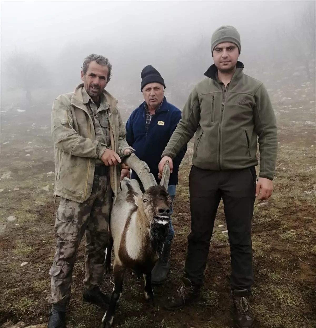 Malatya'da yaralı yaban keçisi, avcılar tarafından DKMP ekiplerine teslim edilerek tedavi edilecek.