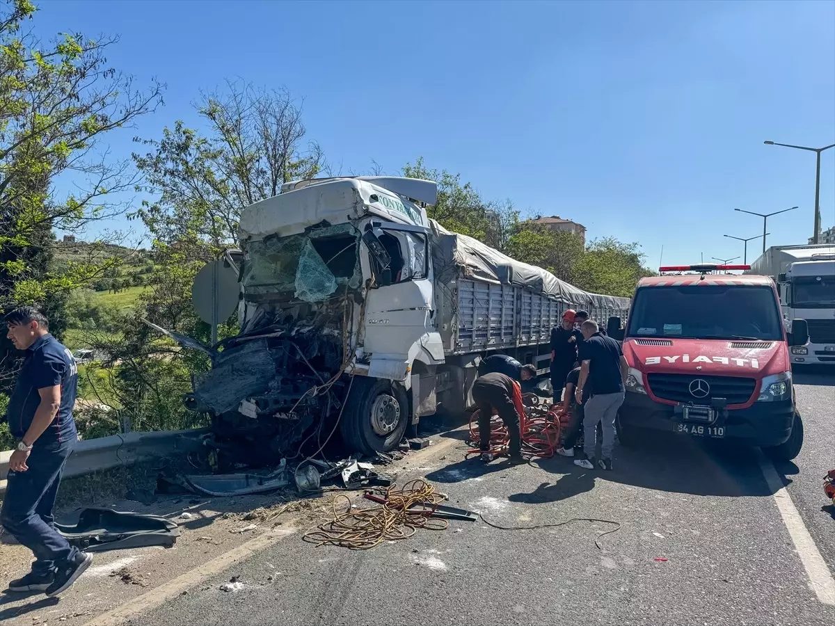 Uşak'ta 2 tır ve 1 otomobilin karıştığı kazada 1 kişi yaralandı, yol yeniden trafiğe açıldı.