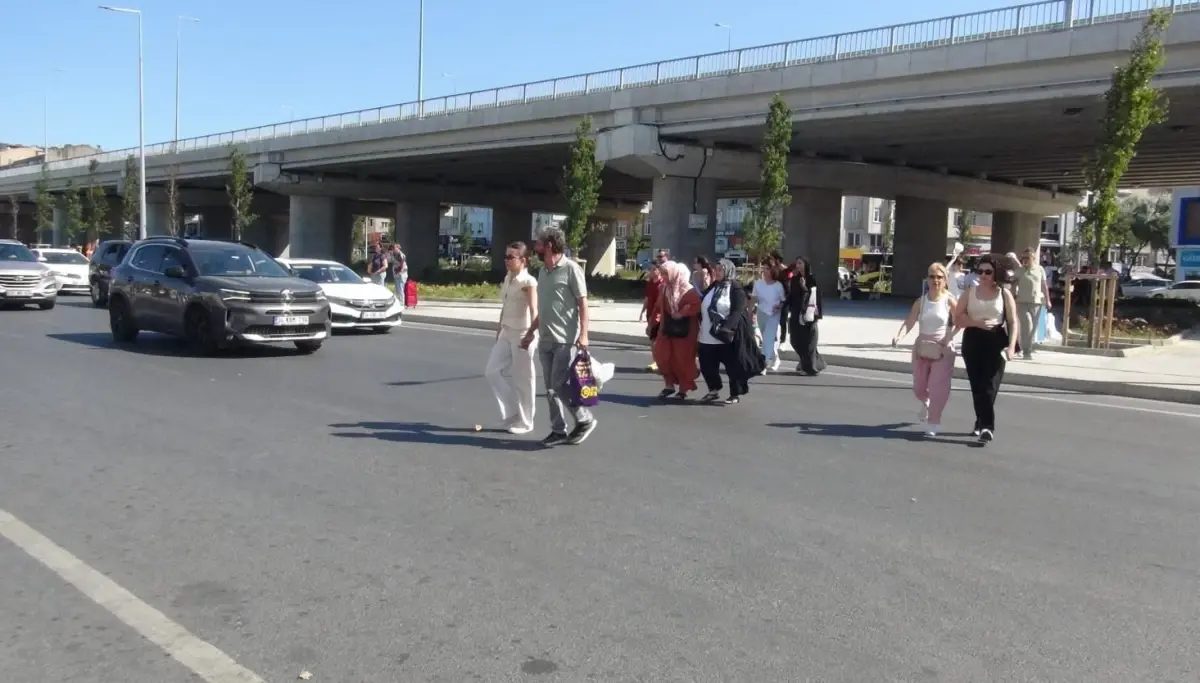 Silivri'deki alışveriş merkezi yakınında yayalar, tehlikeli bir şekilde araçların arasından geçiyor.