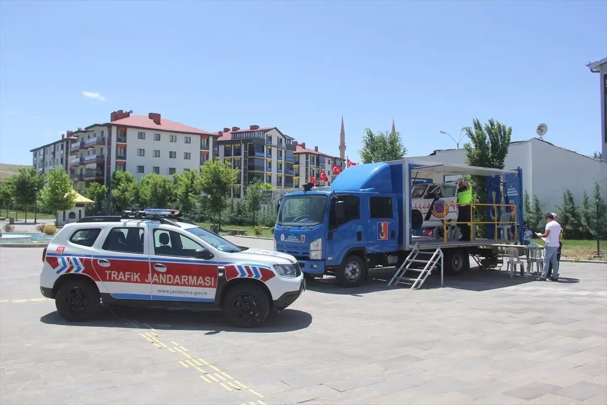 Zara'da simülasyon aracıyla vatandaşlar emniyet kemerinin önemini deneyimledi.