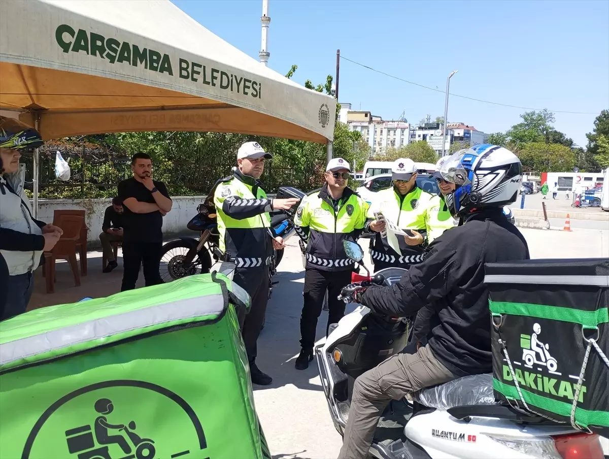 Samsun'un Çarşamba ilçesinde Trafik Haftası kapsamında motosiklet sürücülerine bilgilendirme yapıldı.