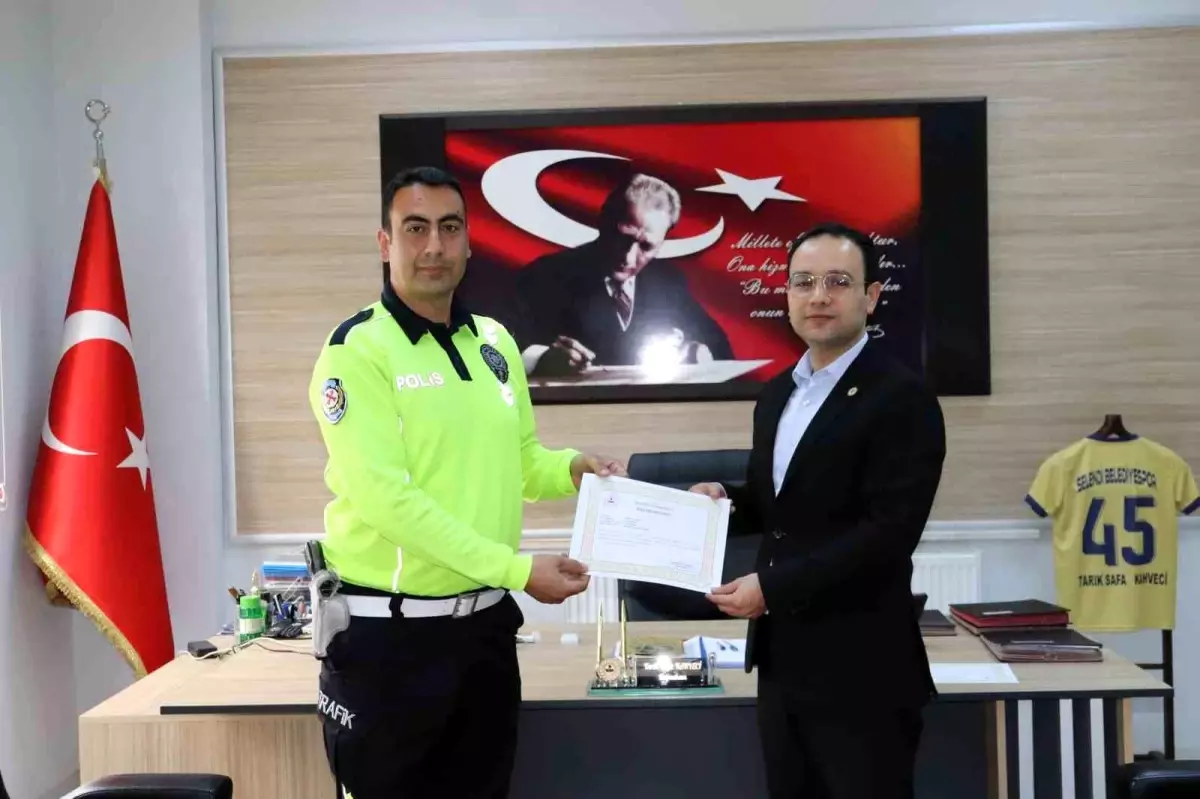 Kaymakam Kahveci, trafik güvenliği için çalışan emniyet ve jandarma ekiplerine ödül verdi.