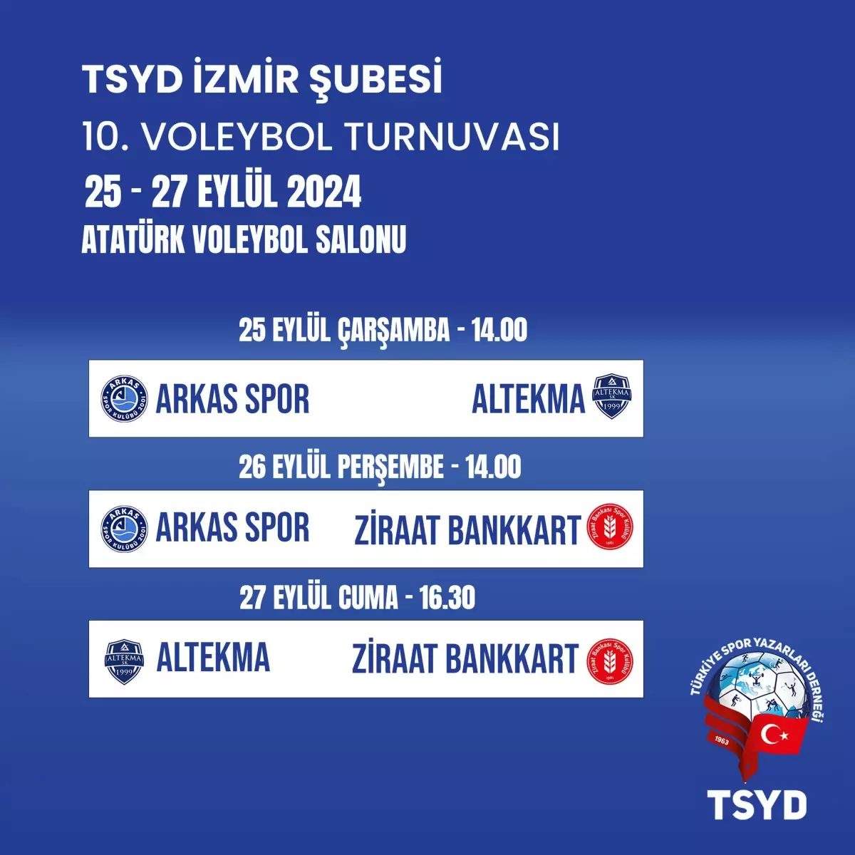 TÜRKİYE Spor Yazarları Derneği (TSYD) İzmir Şubesi'nin Efeler Ligi takımları arasında sezon öncesi geleneksel olarak düzenlediği voleybol turnuvası yarın başlayacak. İzmir Atatürk Voleybol Kompleksi'nin ev sahipliğindeki 10'uncu TSYD İzmir Voleybol ...