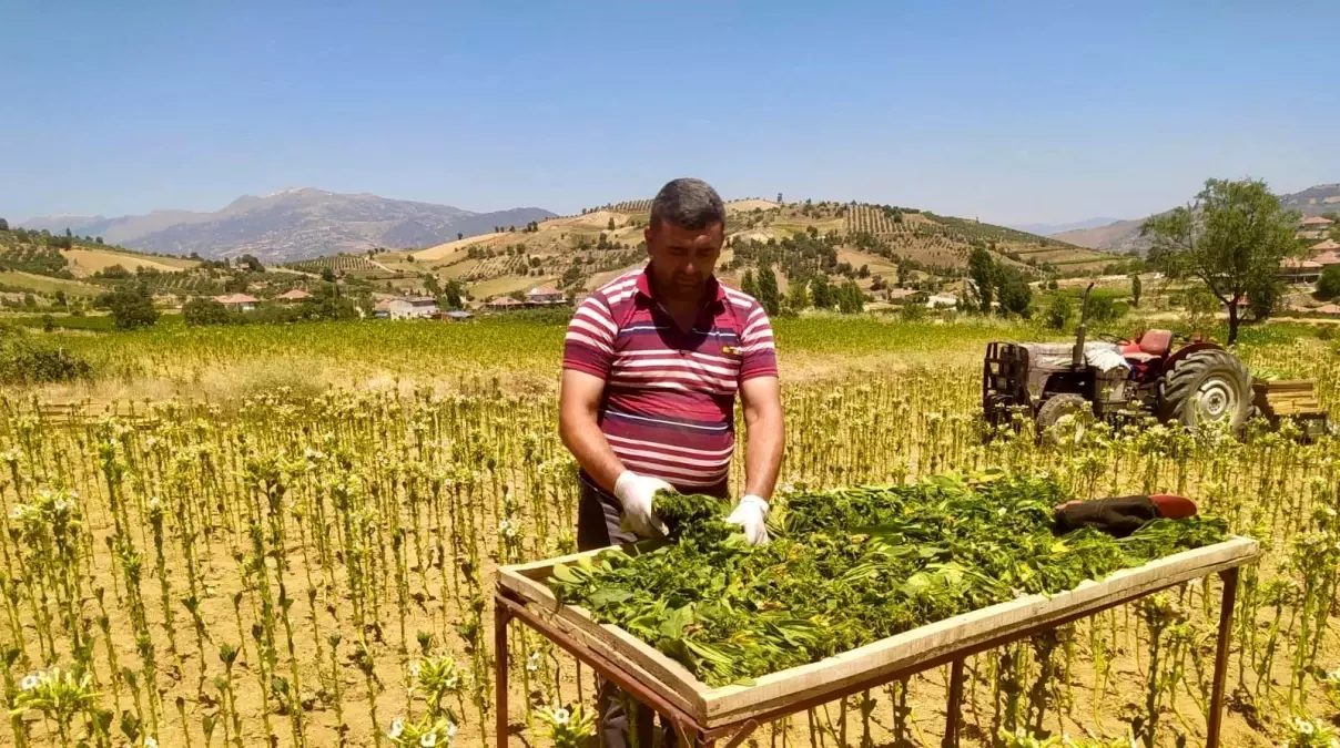 Manisa Sarıgöl'de çiftçiler, 2025 ürünü tütün kırımına başladı. Ücretler 200 TL. Üretim azaldı.