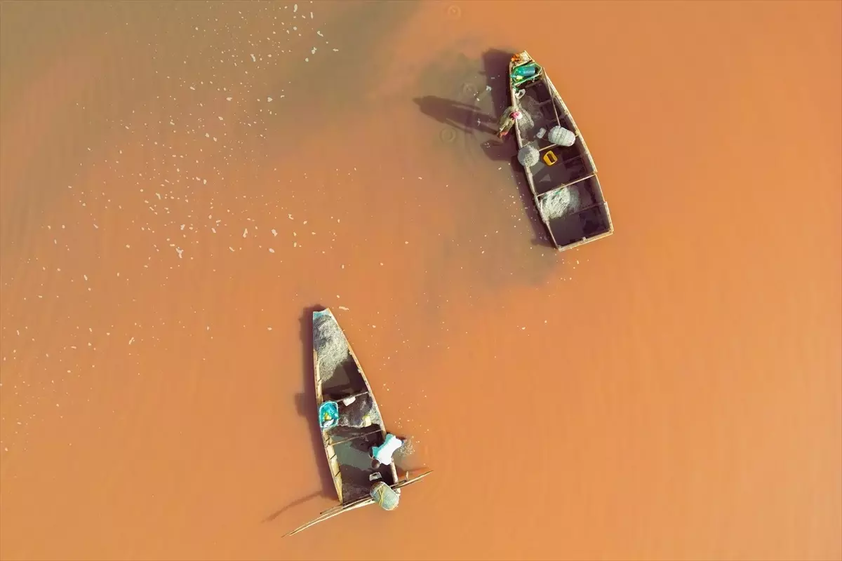 Aşırı yağışlar nedeniyle rengini kaybeden Pembe Göl, 3 yıl aradan sonra tekrar pembeye döndü.