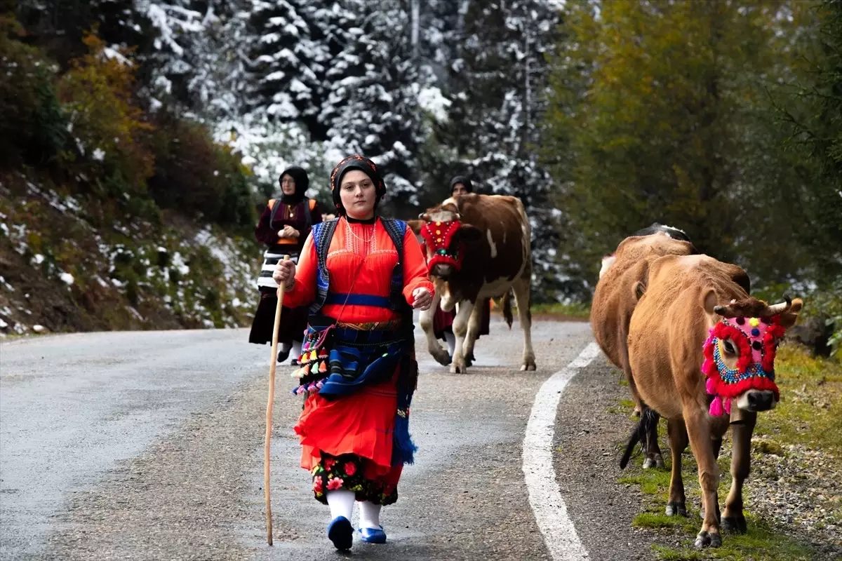 Doğu Karadeniz'de besiciler kar nedeniyle yaylalardan köylere dönüş yolculuğuna başladı.