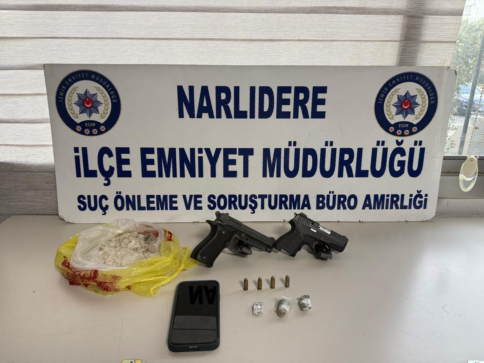 İzmir’in Narlıdere ilçesinde, İlçe Emniyet Müdürlüğü ekiplerince gerçekleştirilen saha çalışmalarında, F.P. isimli şahsın uyuşturucu madde ticareti yaptığına dair istihbari bilgiler elde edildi. Yapılan araştırmalar ve alınan Arama ve El Koyma Kararına istinaden, 7 Şubat 2025 tarihinde F.P.’nin ikamet adresine operasyon düzenlendi. Gerçekleştirilen aramada, şüpheliye ait evde çeşitli silah ve uyuşturucu maddeler ele geçirildi: Ele geçirilen […]
