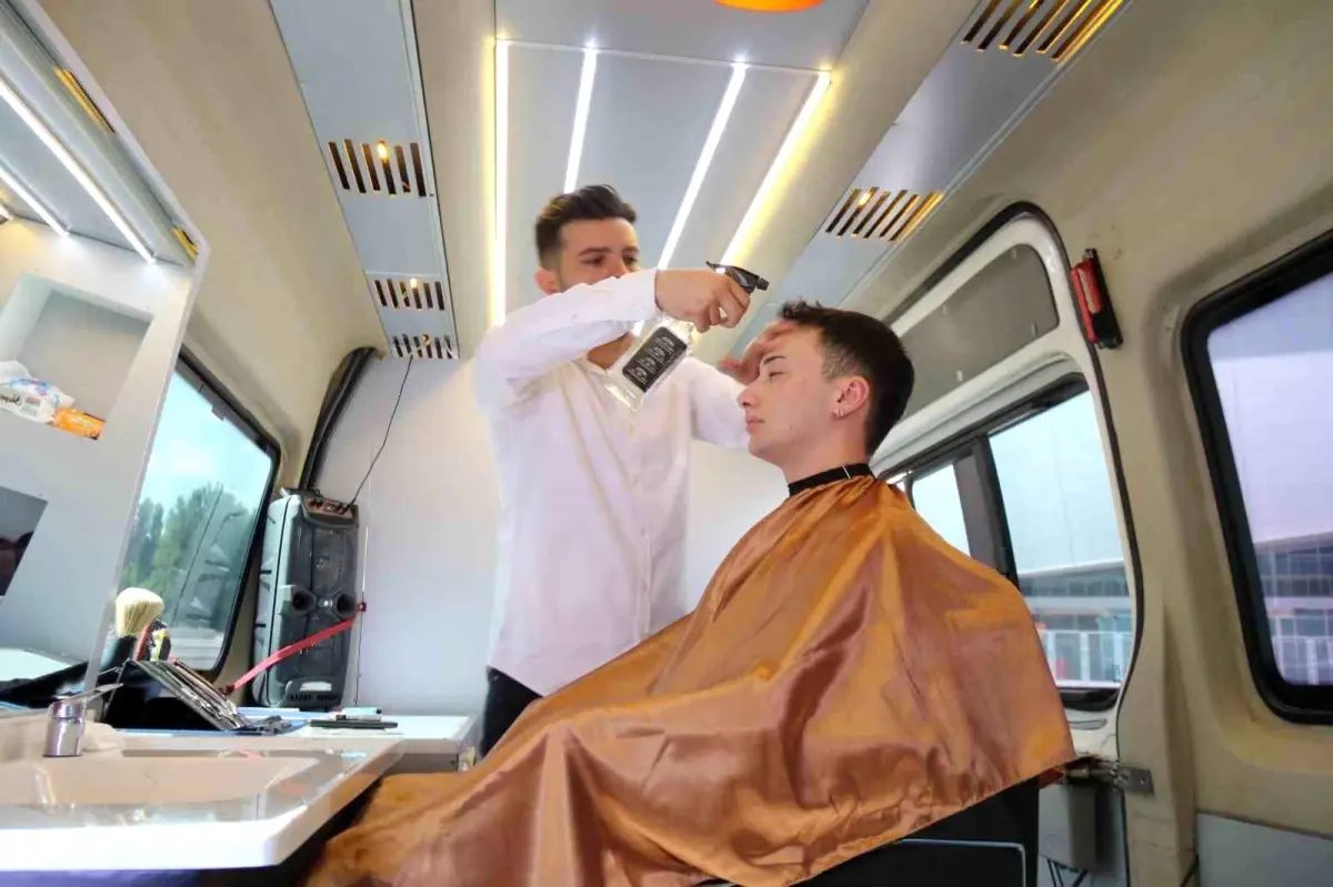 Seyyar Berber Minibüsüyle Hizmet Veriyor