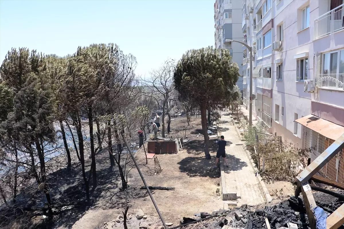 Bornova'daki yangında evler zarar gördü, dronla görüntülenen alan siyaha bürüldü. Yangın kontrol altına alındı.