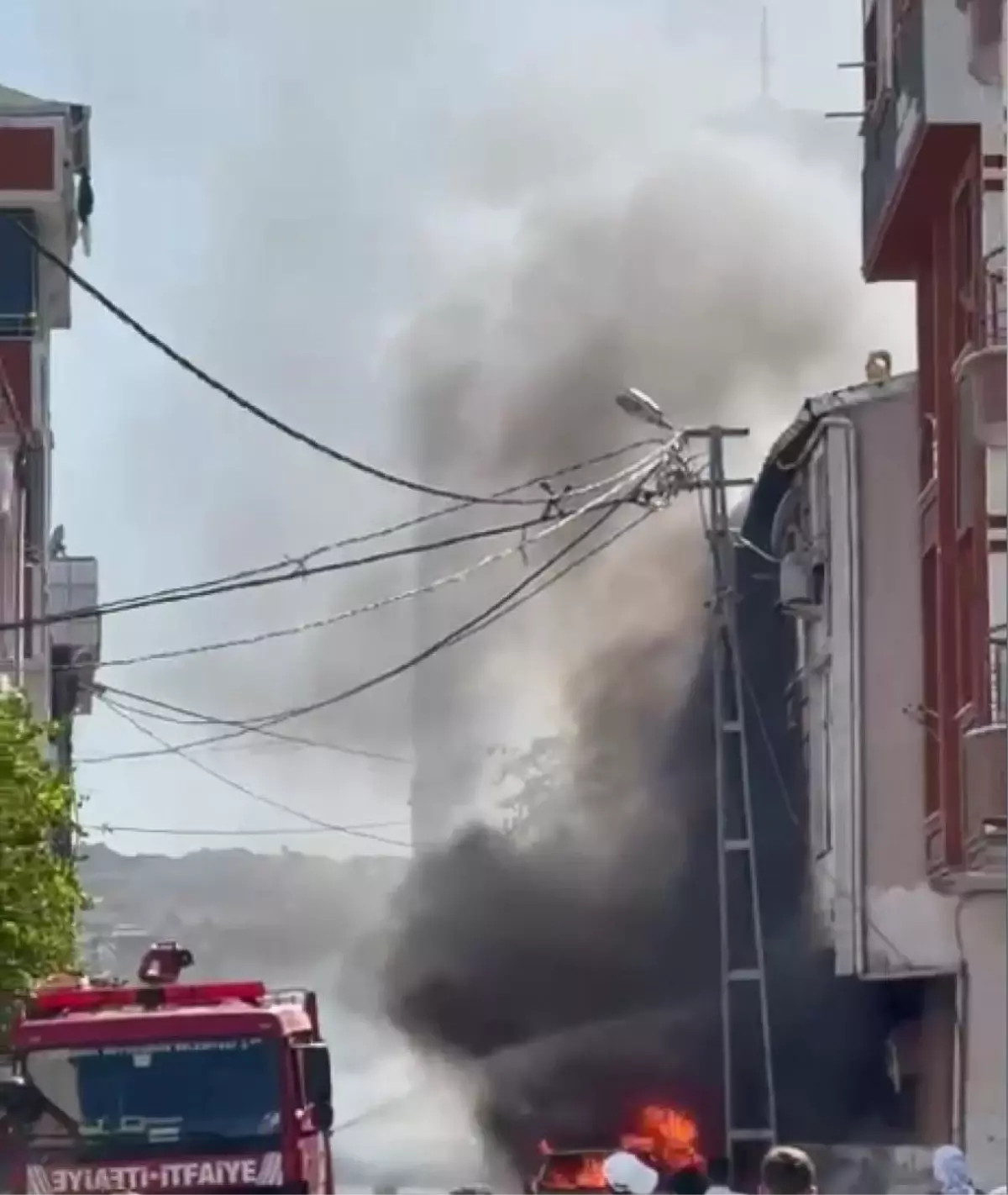 Park halindeki araçta çıkan yangın binaya sıçradı, itfaiye müdahale etti. Maddi hasar var.