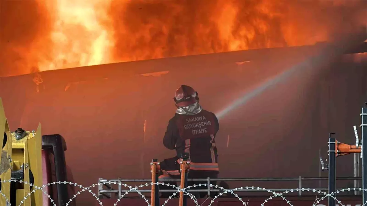 Sakarya'nın Adapazarı ilçesinde traktör bayisinin deposunda büyük yangın başladı. İtfaiye ekipleri müdahale ediyor.