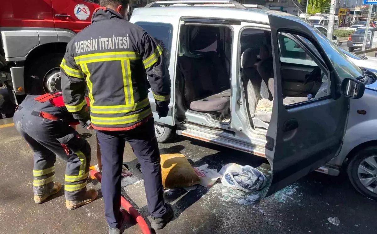 Mersin'de park halindeki araçta çıkan yangın, esnafın müdahelesiyle büyümeden söndürüldü.