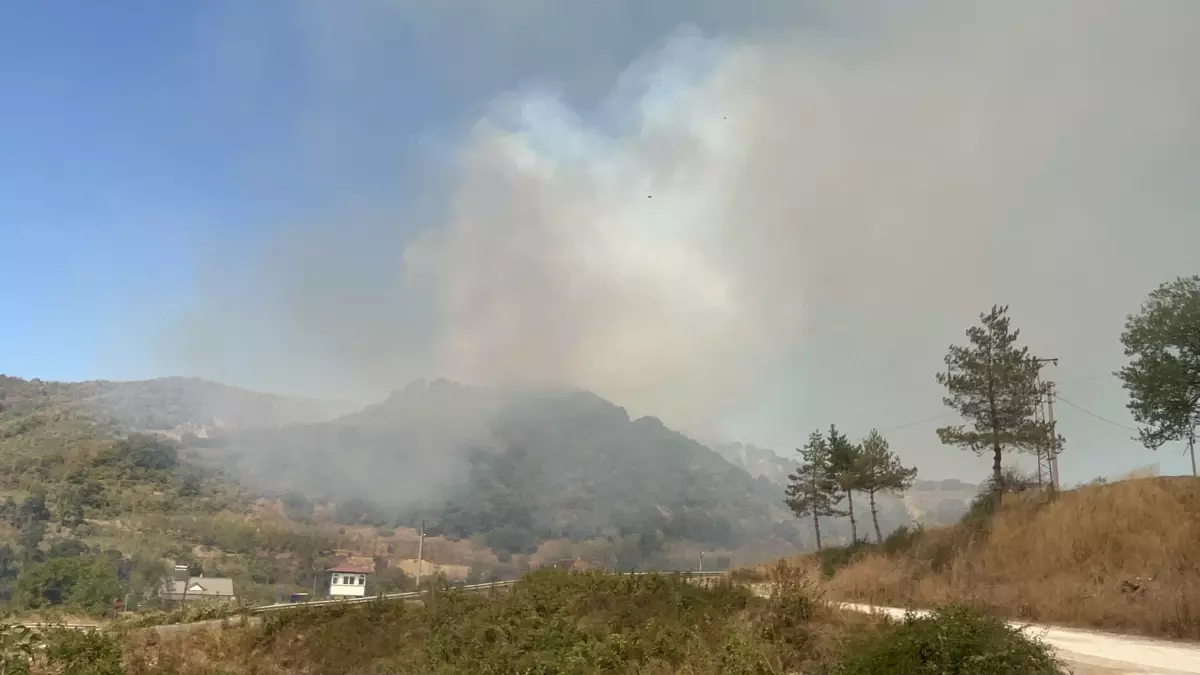 Düzce Esençam köyünde çıkan orman yangınına havadan ve karadan müdahale ediliyor.