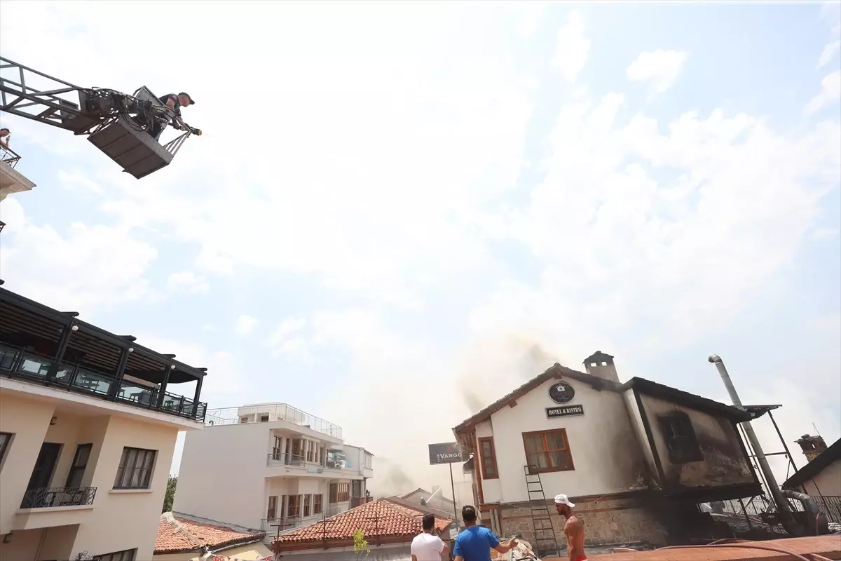 Antalya Kaleiçi'nde çıkan yangında bir otel ve eğlence mekanı zarar gördü, soğutma çalışmaları sürüyor.