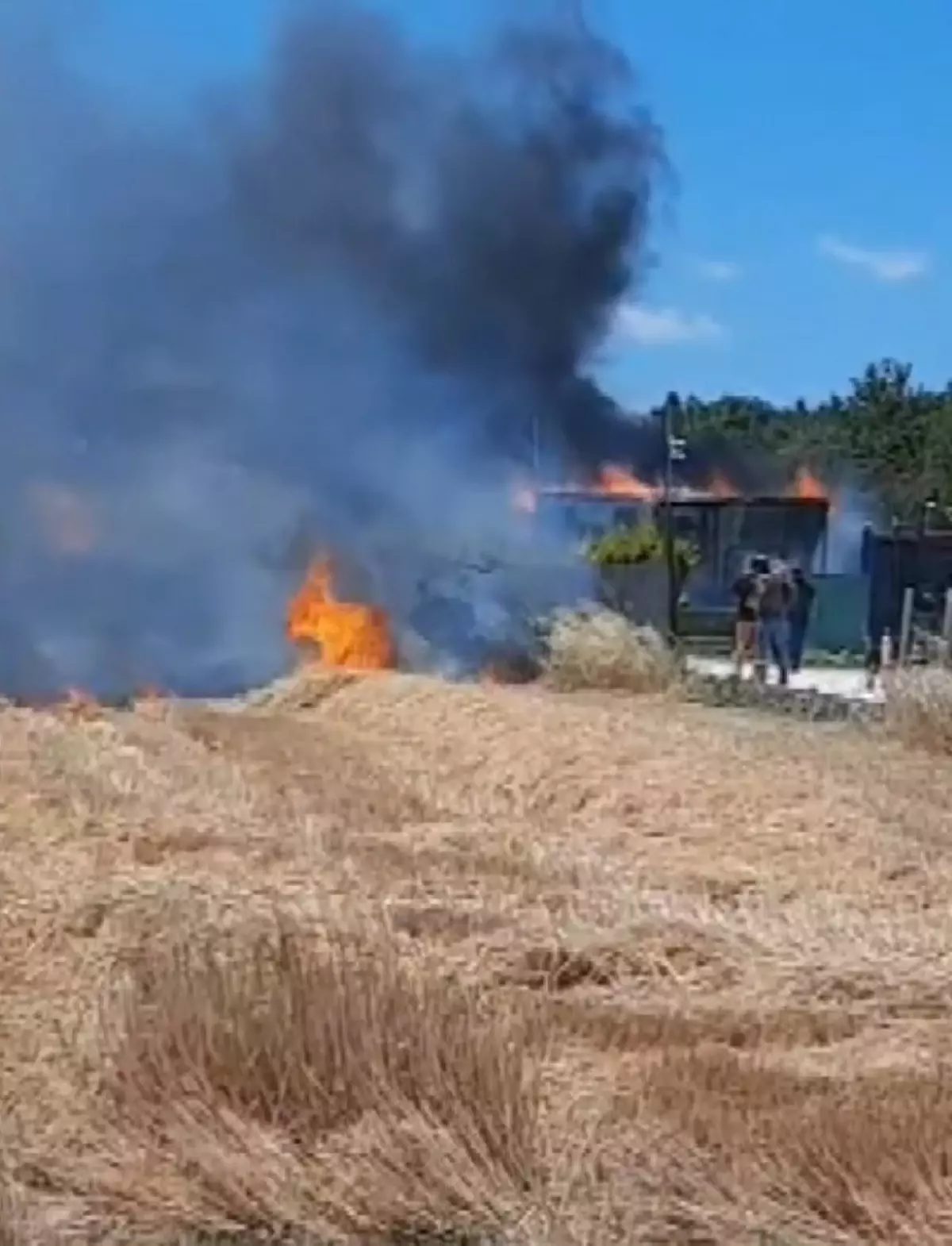 Silivri'de otluk alanda çıkan yangın, rüzgarla çiftlik evine sıçradı. İtfaiye ekipleri müdahale etti.